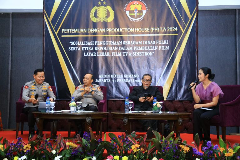 DelikAsia.com, (Jakarta) |  Divisi Humas Polri menyelenggarakan kegiatan pertemuan dengan Production House (PH) T.A 2024 bertemakan “Sosialisasi Penggunaan Seragam Dinas Polri Serta Etika Kepolisian Dalam Pembuatan Film Layar Lebar, Film TV, Serta Sinetron“, di Arion Suites Hotel Kemang Jakarta Selatan, Rabu (21/2/2024).