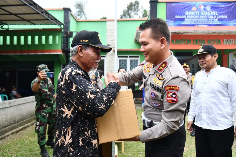 Bogor, (DelikAsia.com) | Dalam rangka memperingati Hari Ulang Tahun (HUT) ke-68 Lalu Lintas Bhayangkara, Korps Lalu Lintas (Korlantas) Polri mengadakan kegiatan bakti sosial (baksos) dengan membagikan sembako sebanyak 1.070 paket di Desa Kota Batu, Ciomas, Bogor, Jawa Barat.