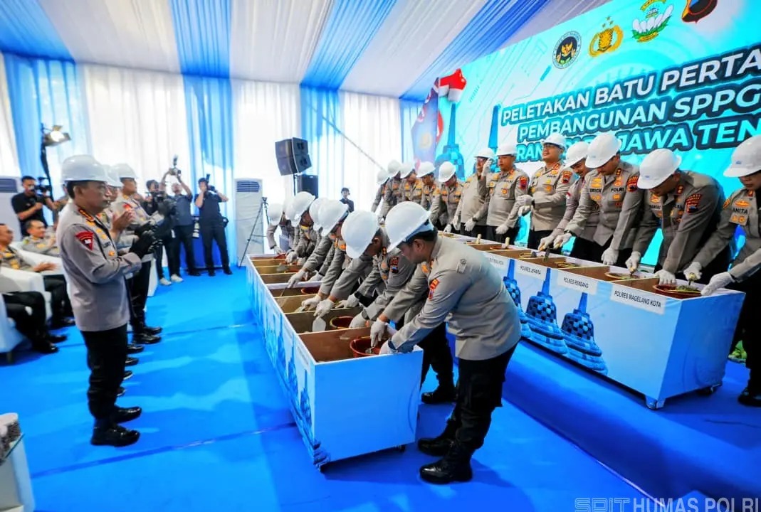 Delik Asia, (Jawa Tengah) |  Kapolri Jenderal Listyo Sigit Prabowo meresmikan 32 Satuan Pelayanan Pemenuhan Gizi (SPPG) dan melakukan peletakan batu pertama (groundbreaking) pembangunan 27 SPPG baru di wilayah Polda Jawa Tengah, Jumat, 17 Oktober 2025.