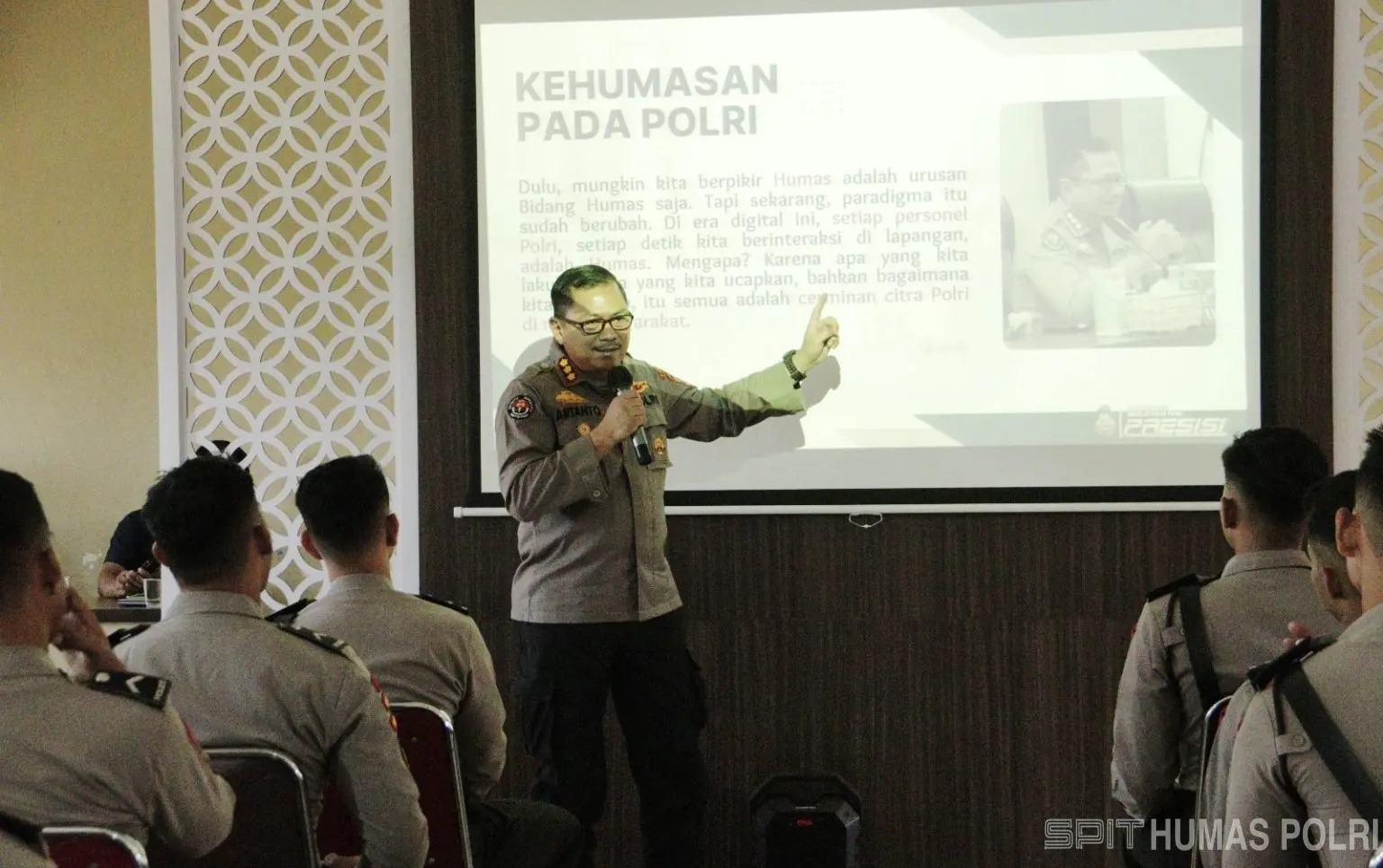 “Paradigma sudah berubah, kini setiap anggota mengemban fungsi Humas. Karena apa yang kita lakukan, apa yang kita ucapkan, bahkan bagaimana kita bersikap, itu semua adalah cerminan citra Polri di mata masyarakat,” tegasnya.