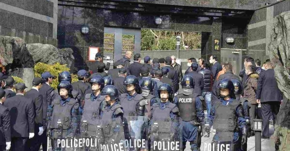 Keterangan Foto: Anggota polisi prefektur Fukuoka mulai menggeledah rumah ketua Kudo-kai, Satoru Nomura, di Kitakyushu, pada September 2015. Tanggal 11 September menandai 10 tahun sejak polisi menangkap Satoru Nomura atas dugaan pembunuhan, sebagai upaya untuk memberantas satu-satunya sindikat kejahatan yang ditunjuk sebagai sangat berbahaya oleh pemerintah nasional. FOTO: THE YOMIURI SHIMBUN.