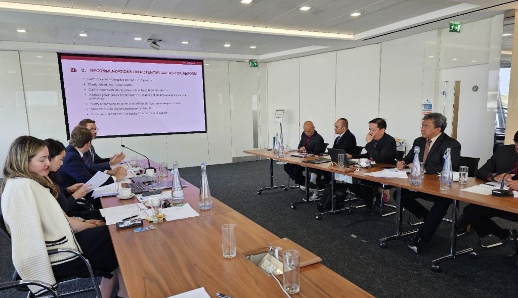 Dalam konteks reformasi hukum ekonomi, delegasi mengunjungi Standing International Forum of Commercial Courts (SIFOCC) dan Mahkamah Agung Inggris. SIFOCC, yang memiliki 58 anggota negara, membahas harmonisasi prosedur eksekusi putusan asing tentang pembayaran uang.