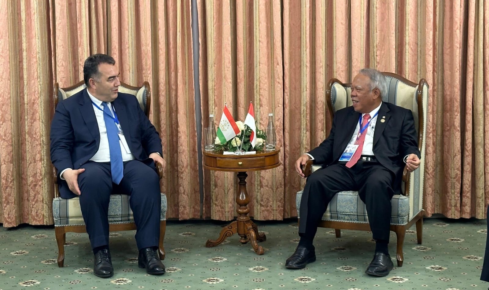 DelikAsia.com, (Dushanbe) |  Di sela-sela kunjungan kerjanya untuk menghadiri The 3rd Dushanbe Water Action Decade Conference di Republik Tajikistan, Menteri Pekerjaan Umum dan Perumahan Rakyat (PUPR) Basuki Hadimuljono melakukan pertemuan bilateral dengan Menteri Sumber Daya Air dan Energi Republik Tajikistan Daler Jum’a Shofaqir pada Selasa (11/6/2024).