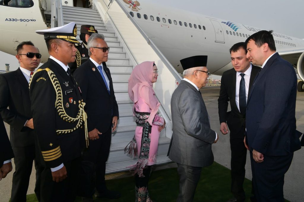 Tashkent, (DelikAsia.com) | Setelah menempuh penerbangan sekitar 10 jam 15 menit, Wakil Presiden (Wapres) K. H. Ma’ruf Amin didampingi Ibu Hj. Wury Ma’ruf Amin beserta rombongan terbatas tiba di Bandara Internasional Islam Karimov Tashkent pukul 18.15 waktu setempat.