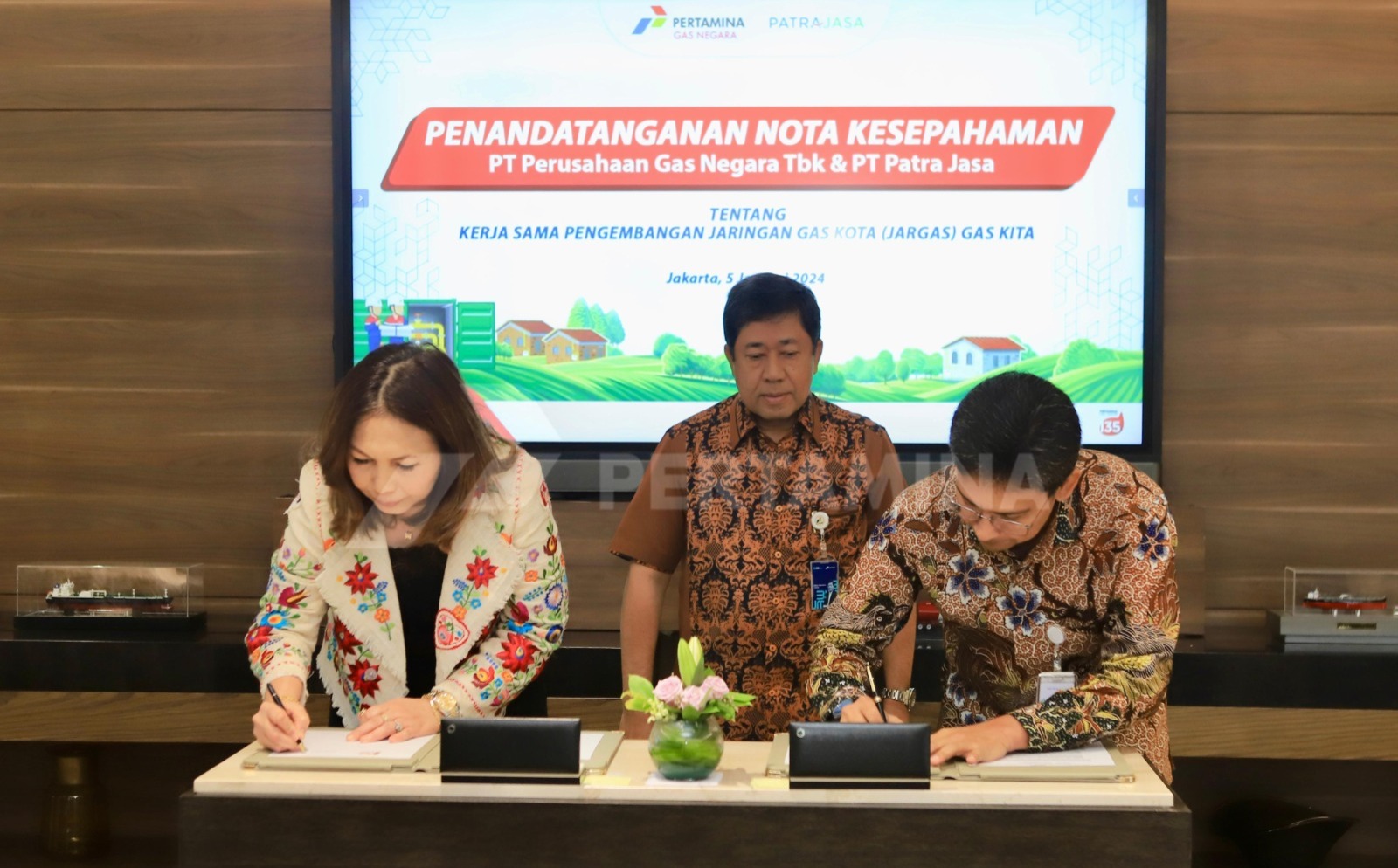 Penguatan Partnership PGN-Patra Jasa dilakukan melalui penandatanganan Nota Kesepahaman (MoU) antara Direktur Sales dan Operasi PGN Ratih Esti Prihatini dan Direktur Properti PT Patra Jasa Whisnu Bahriansyah di Grha Pertamina pada Jumat, 5 Januari 2024. Penandatanganan ini disaksikan langsung Direktur Logistik & Infrastruktur PT Pertamina (Persero) Alfian Nasution dan SVP Infrastructure Integration dan Optimization Agus Harsoyo.