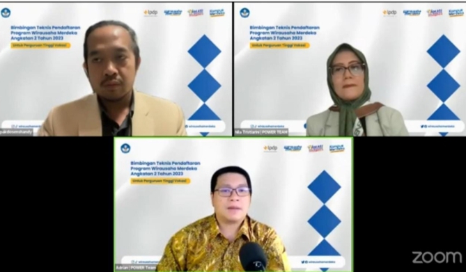 Kegiatan Bimbingan Teknis Pendaftaran Program Wirausaha Merdeka Angkatan 2 tahun 2023 yang diselenggarakan secara daring pada Kamis (6/4) ini mengundang perguruan tinggi penyelenggara pendidikan vokasi (PTPPV) untuk berpartisipasi aktif pada program Wirausaha Merdeka sebagai PT Pelaksana.