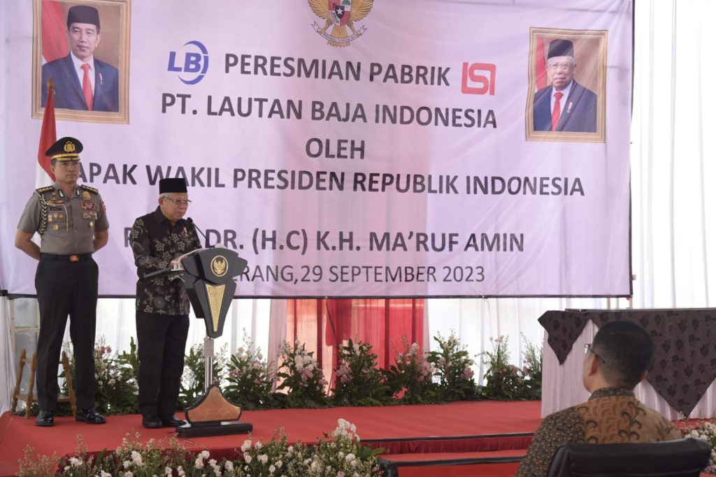 “Jangan sampai kebutuhan yang besar ini dipenuhi dari impor,” tutur Wakil Presiden (Wapres) K.H. Ma’ruf Amin saat meresmikan Pabrik PT. Lautan Baja Indonesia, di Kawasan Industri Balajara Mas Nomor 8, Jl. Raya Serang Km. 24, Desa Telagasari, Kecamatan Balaraja, Kabupaten Tangerang, Banten, pada Jumat (29/09/2023).