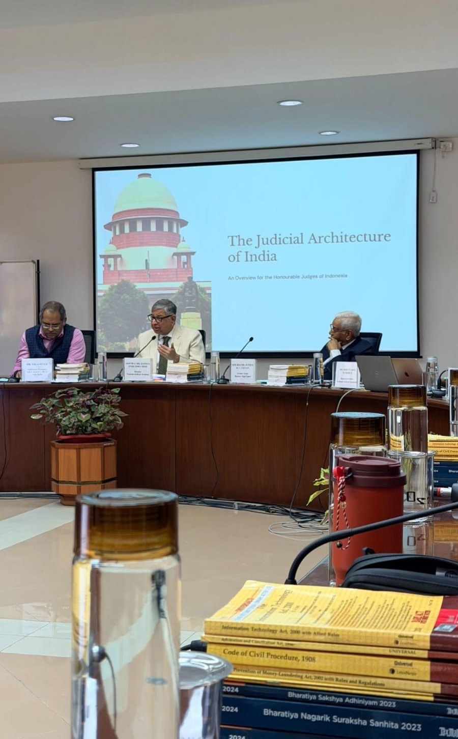 Penghujung sesi, Justice Bose menyampaikan catatan kritis tentang tata kelola pelatihan yudisial global. Ia menilai bahwa selama ini pusat-pusat pelatihan dan pertemuan yudisial internasional masih terpusat di Singapura, London, Paris, New York, dan Dubai.