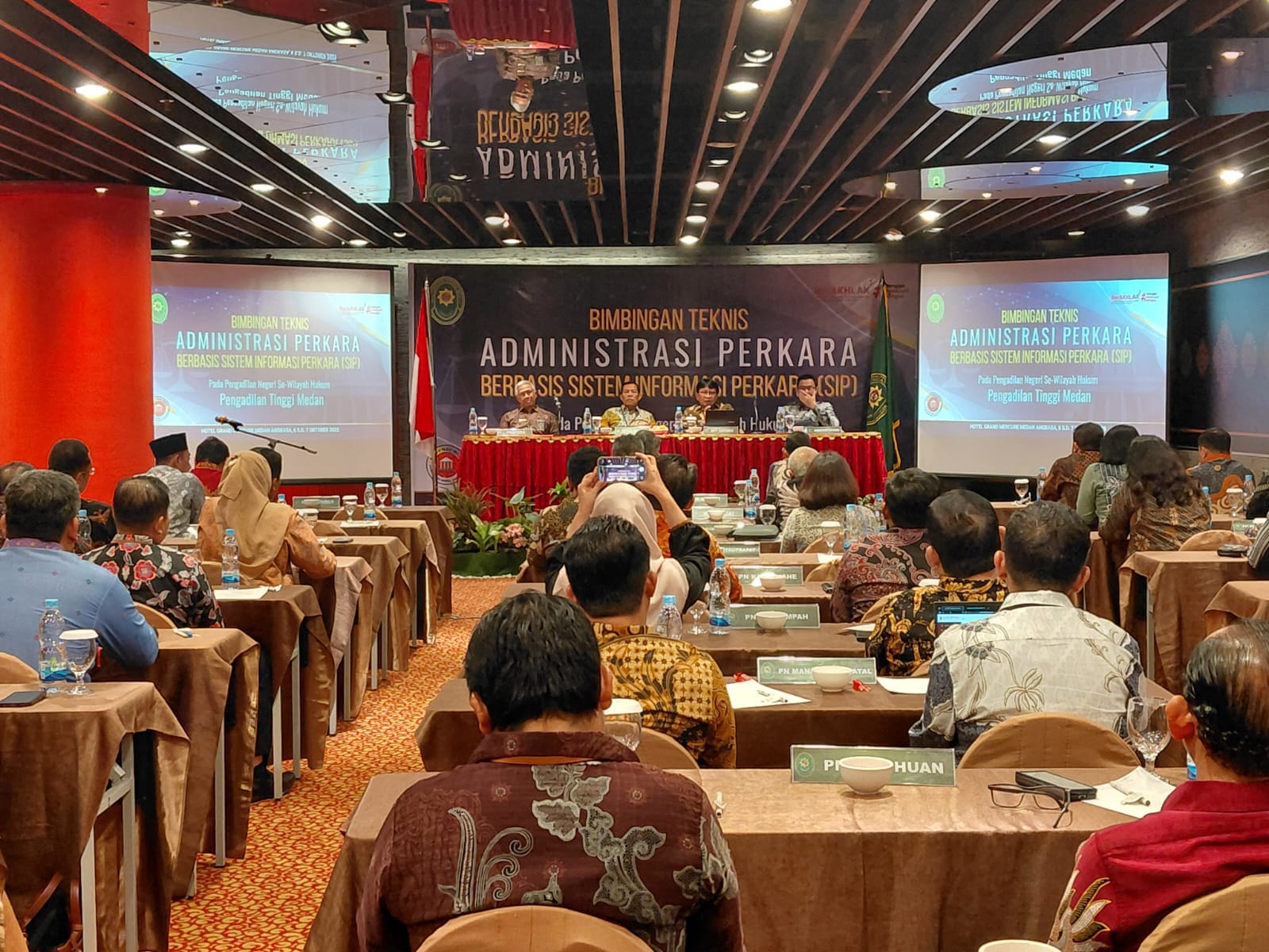 Delik Asia, (Medan) | Pengadilan Tinggi (PT) Medan, Sumatera Utara, menyelenggarakan bimbingan teknis (Bimtek) administrasi perkara berbasis sistem informasi perkara (SIP) bagi Pengadilan Negeri (PN) se wilayah hukum PT Medan pada 6-7 Oktober 2025 di Hotel Grand Mercure Maha Cipta Medan Angkasa, Jalan Sutomo nomor 1, Perintis, Kecamatan Medan Timur, Kota Medan, Sumatera Utara.
