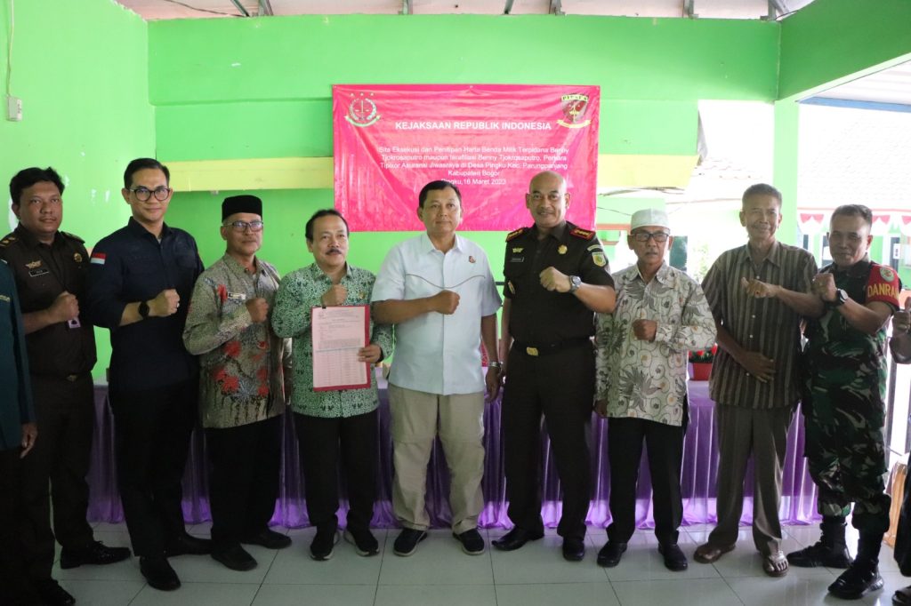 Jakarta, (DelikAsia.com) | Kamis 16 Maret 2023 bertempat di Kantor Desa Pingku, Kecamatan Parung Panjang, Kabupaten Bogor, telah dilaksanakan kegiatan penyerahan dan penandatanganan Berita Acara Penitipan Benda Sita Eksekusi milik atau yang terafiliasi dengan Terpidana BENNY TJOKROSAPUTRO, dimana aset tersebut telah disita eksekusi pada Rabu 15 Maret 2023, dalam perkara tindak pidana korupsi pengelolaan keuangan dan dana investasi oleh PT Asuransi Jiwasraya (persero) periode 2008-2018.