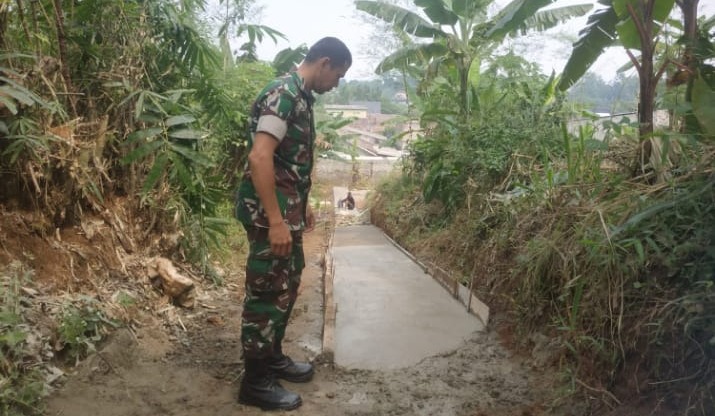 Sudah menjadi rutinitas sehari- hari bagi Serda Rizal Aiyub melintasi jalan tanah itu karena ia bersama istri dan anaknya tinggal di Desa Kalisuren, di di Jl Haji Katong, RT 01/02, Kec Tajur Halang Bogor.