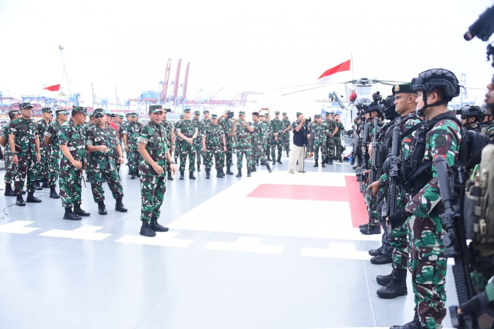 (Puspen TNI). Kesiapan operasi pengiriman bantuan kemanusiaan ke Palestina dicek secara detail oleh Asops Panglima TNI Mayjen TNI Gabriel Lema, S.Sos., bertempat di Gd.Laut Nusantara dan KRI Radjiman Wedyodiningrat 992, Kolinlamil, Jakarta Utara, Kamis (13/06/2024).