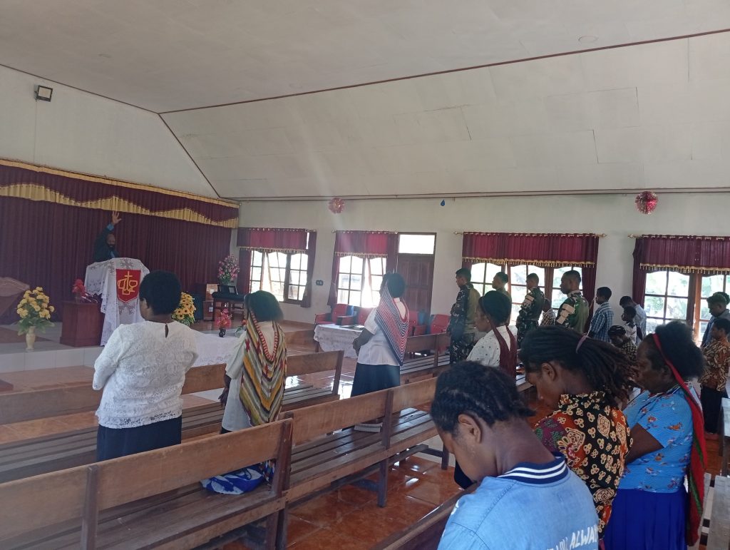 Delik Asia, (Jayawijaya) | Satgas Yonif 521/DY Melalui Pos Bolakme melaksanakan Ibadah Kebaktian Kebangunan Rohani (KKR) bersama masyarakat bertempat di Gereja Kemah Injil (GKI) Wilayah Papua, Distrik Bolakme, Kab. Jayawijaya, Papua Pegunungan. (13/7).