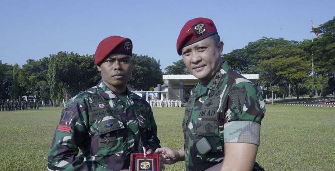 DelikAsia.com, (Jakarta) | Komandan Jenderal Kopassus secara langsung memberikan penghargaan kepada dua prajurit terbaik Kopassus bersamaan dengan kegiatan Upacara 17an, yang digelar di lapangan Markas Komando Pasukan Khusus (Makopassus) hari ini. Penghargaan ini diberikan sebagai bentuk apresiasi atas prestasi gemilang yang telah diraih oleh kedua prajurit tersebut di tingkat internasional.