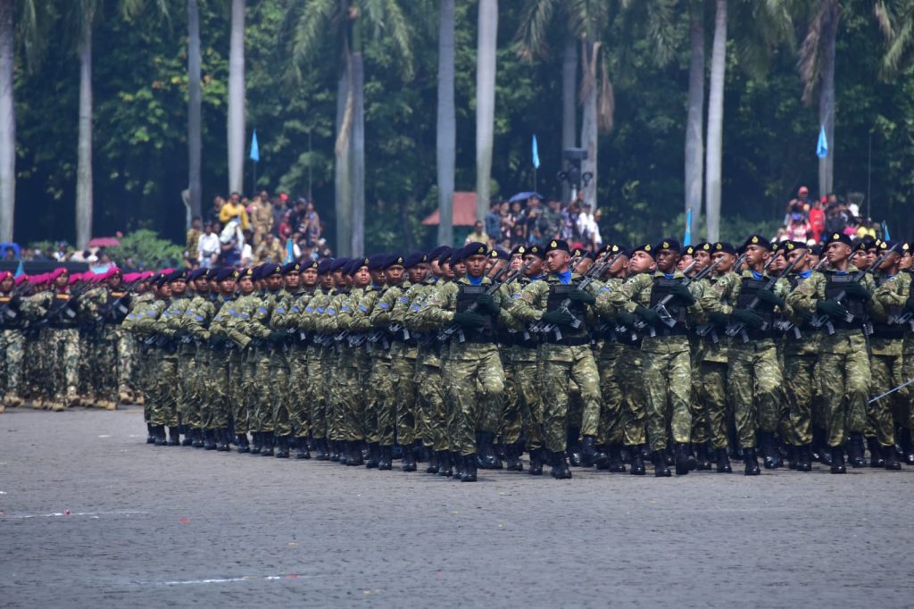 Dengan derap langkah yang gagah nan menawan para prajurit Jalasena memberikan penghormatan yang dibarengi dengan langkah Defile guna mencerminkan sikap kedisiplinan para prajurit TNI khususnya TNI AL dalam menyambut HUT ke-80 TNI.