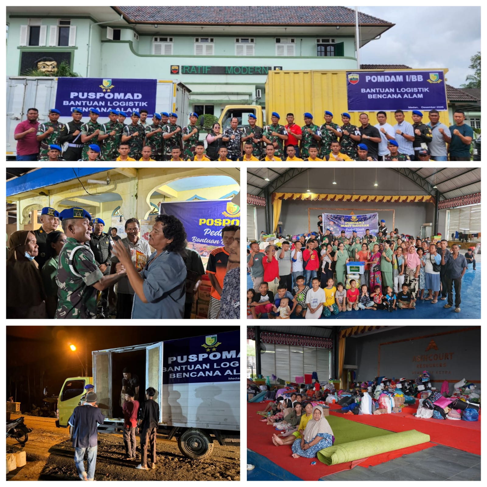Bantuan yang diberikan berupa sembako dan kebutuhan masyarakat yang diserahkan oleh Danpuspomad dan Pomdam I/BB langsung menyalurkannya kepada yang berhak. Bantuan ini jangan dinilai dari besar kecil atau sedikit banyaknya namun nilailah dari keikhlasan Polisi Militer Angkatan Darat untuk membantu masyarakat yang ditimpa Musibah tersebut. Semoga kedepan kehidupan akan kembali seperti sediakala.