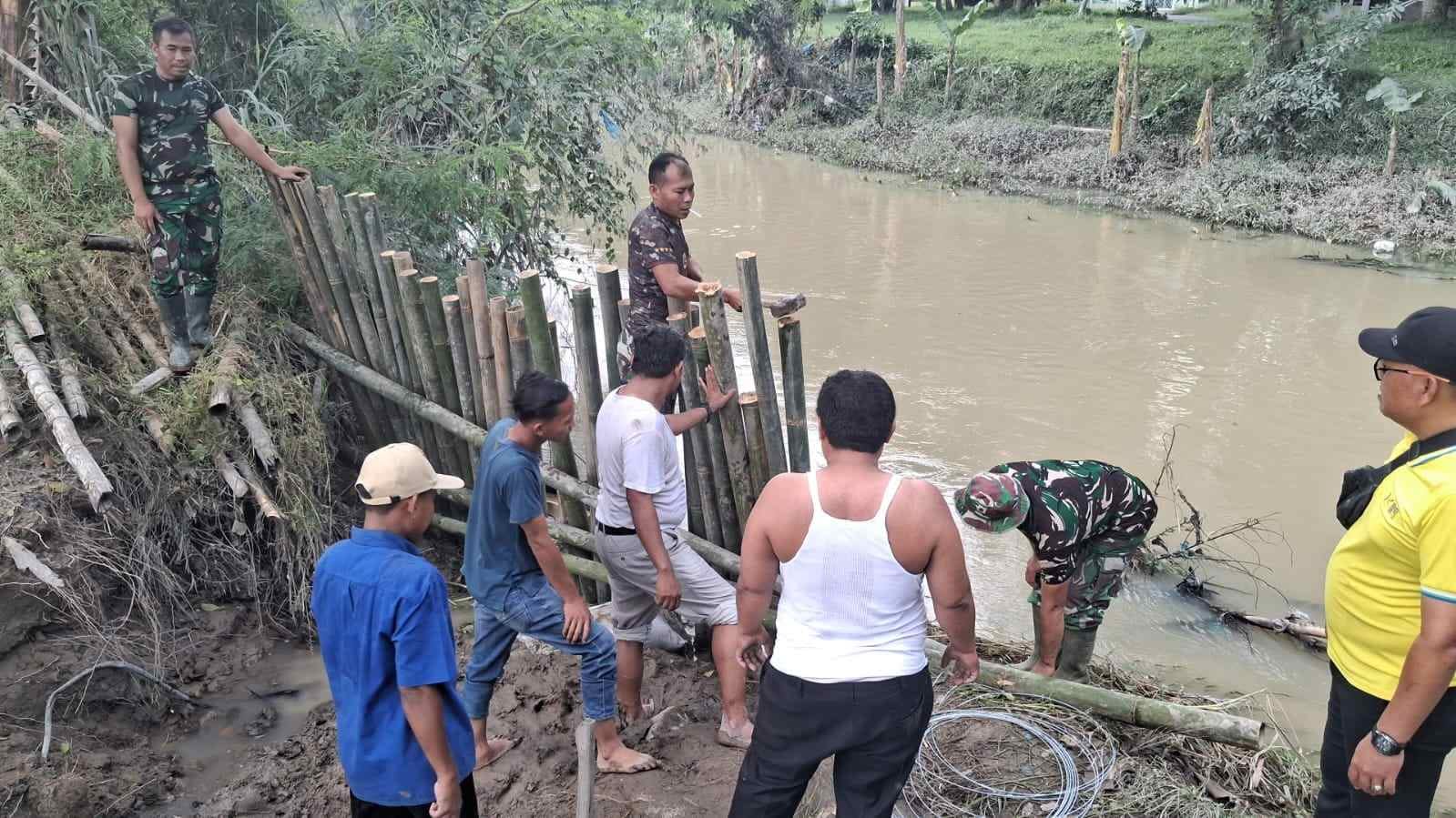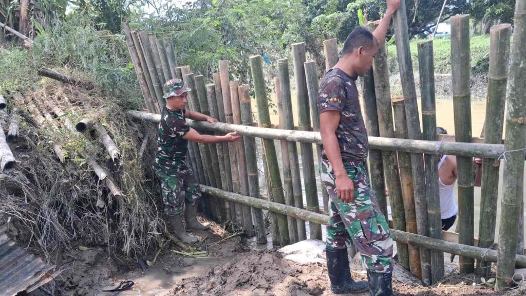 Lubuk Pakam, (Delik Asia) | Babinsa Koramil 06/Lubuk Pakam jajaran Kodim 0204/DS bergerak cepat membantu warga Desa Pagar Merbau III, Kecamatan Lubuk Pakam, Kabupaten Deli Serdang, dalam menangani tanggul sungai yang jebol setelah hujan deras menyebabkan air sungai meluap dan memicu banjir di wilayah tersebut.