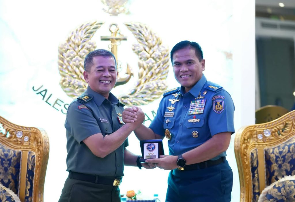 DelikAsia.com, (Jakarta) | Guna mengoptimalkan fungsi Penerangan di jajaran TNI, Kapuspen TNI Mayjen TNI Dr. Nugraha Gumilar, M.Sc., didampingi Waka Puspen TNI Brigjen TNI Teguh Pudji Rahardjo, Kolonel Inf I Ketut Murda (Kabidum), Kolonel Laut (P) Agung Saptoadi (Kabidpenum), Kolonel Sus Aidil (Kabdi MC), dan Kolonel Laut (KH) Bayu Kurnianto (Kabidinfonet) bersilaturahmi dengan Kepala Staf Angkatan Laut (Kasal) Laksamana TNI Muhammad Ali, bertempat di Mabesal, Cilangkap, Jakarta Timur, Selasa (16/1/2024).