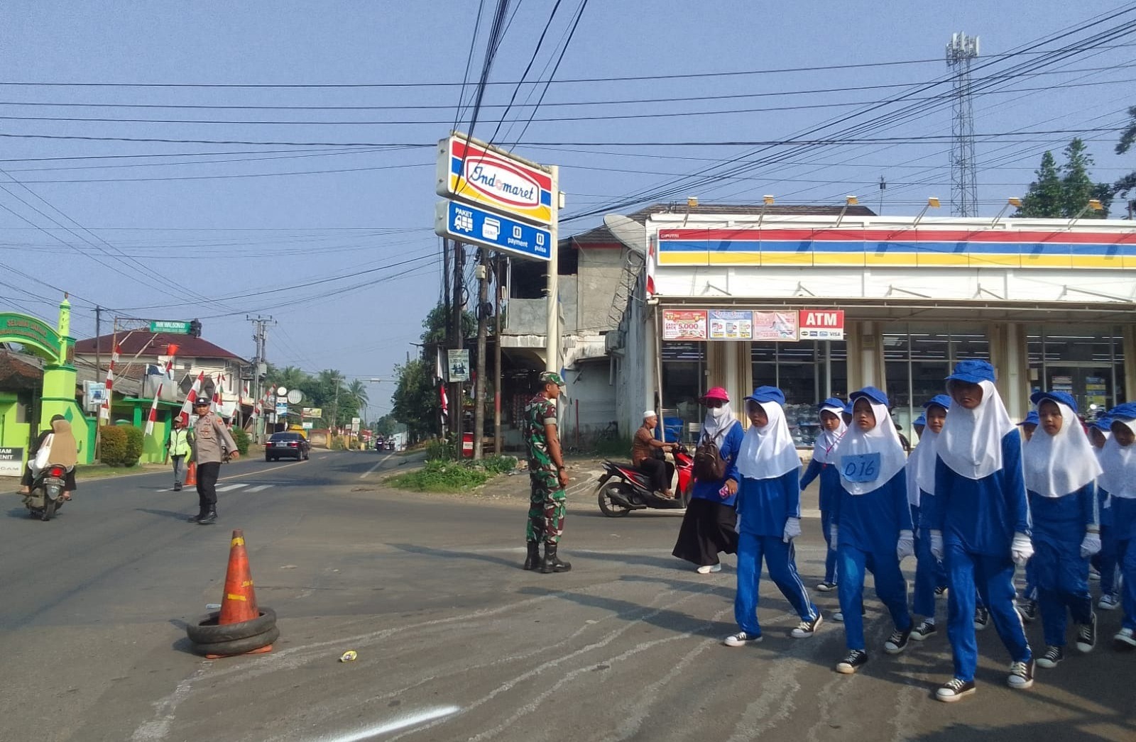 Delik Asia, (Pandeglang) | Dalam rangka menyambut Hari Ulang Tahun (HUT) Kemerdekaan Republik Indonesia ke-80, Babinsa Koramil 0106/Menes, Kodim 0601/Pandeglang melaksanakan kegiatan pengamanan lomba gerak jalan antar instansi dan sekolah se-Kecamatan Menes, Kabupaten Pandeglang, Provinsi Banten.