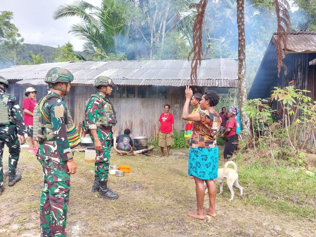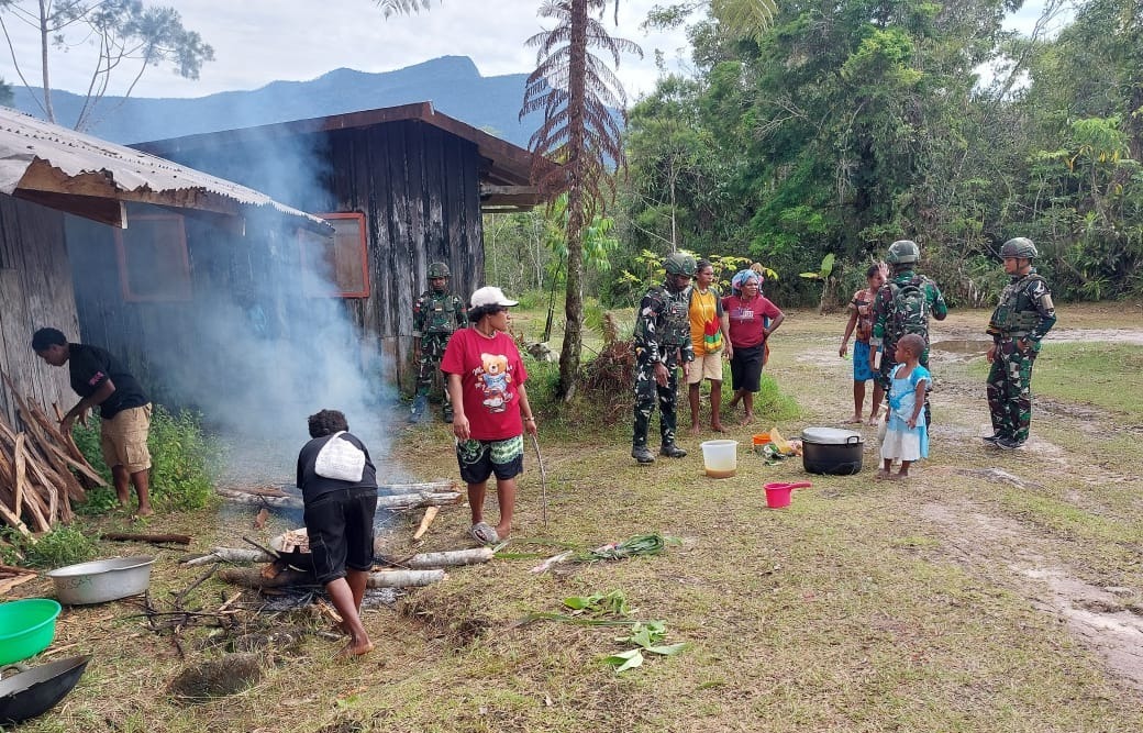 Masuk Dapur Mama Papua Satgas Yonif 521/DY Bantu Memasak dalam Rangka Perayaan Ulang Tahun PW Gereja Lacheroy Distrik Apalpsili Kabupaten Yalimo
