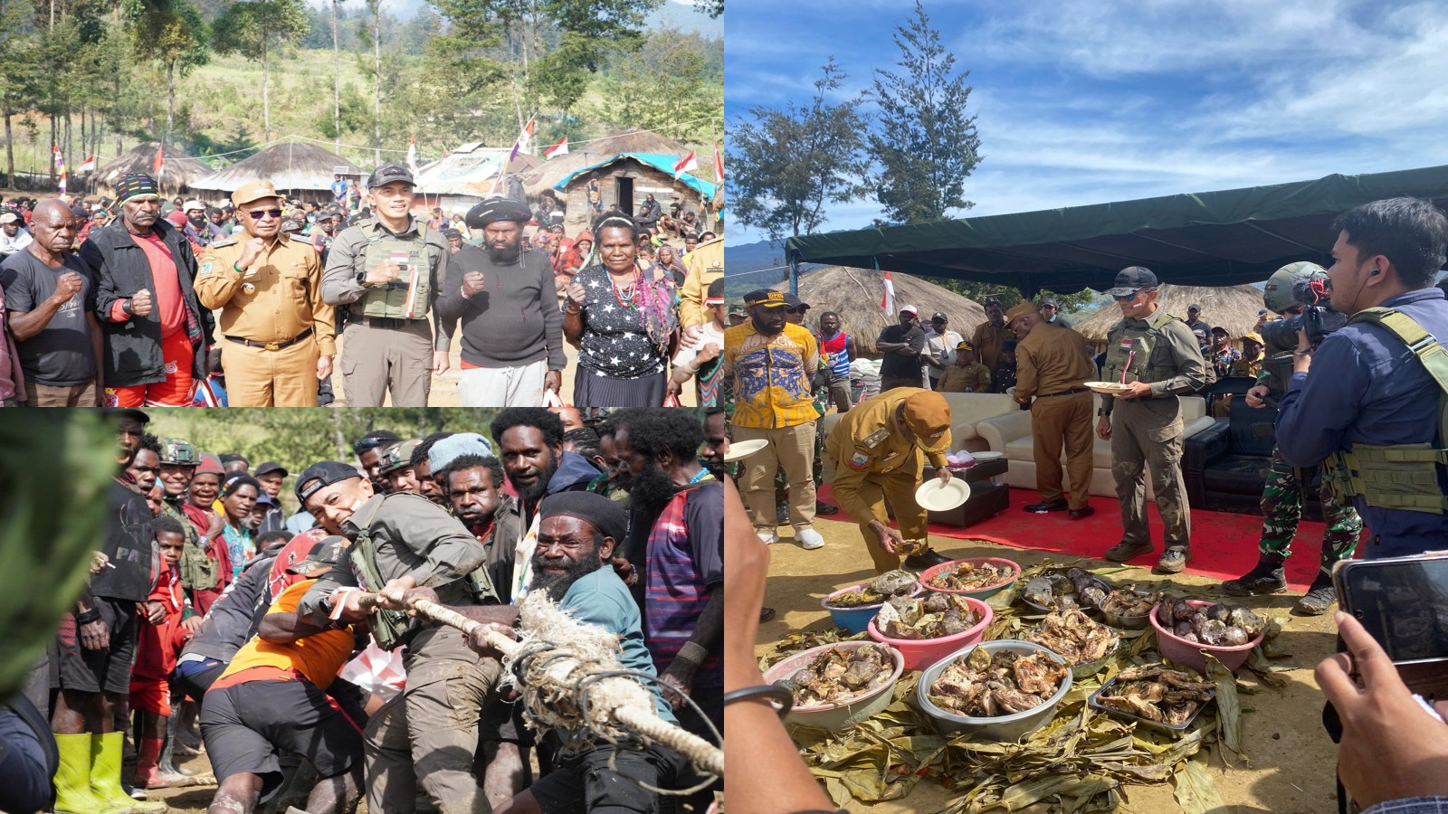 Dalam kunjungan itu, Pangkogabwilhan III menyerahkan bantuan bagi perwakilan masyarakat pengungsi dan cinderamata kepada Bupati Elvis Tabuni. Acara dilanjutkan sesi foto bersama serta doa penutup yang penuh khidmat. Uniknya, kegiatan juga diramaikan lomba tarik tambang antarwarga pengungsi, yang disaksikan langsung oleh Panglima bersama jajaran Forkopimda.
