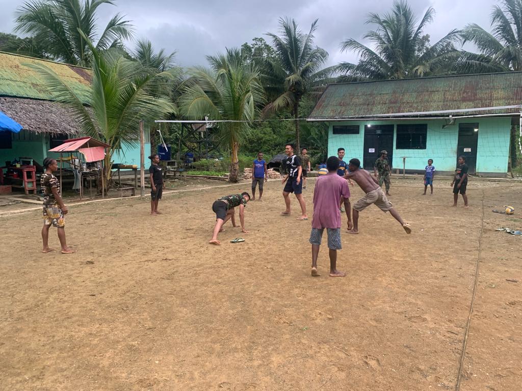 Keerom, (DelikAsia.com] | Prajurit Satgas Yonif 143/TWEJ menggelar kegiatan olahraga bersama dengan pemuda Kampung Monggoefi, mereka dengan penuh semangat dan gembira mengikuti kegiatan olahraga bersama di Pos KM 140 Distrik Yaffi, Kabupaten Keerom, Papua, Minggu (4/6/2023).
