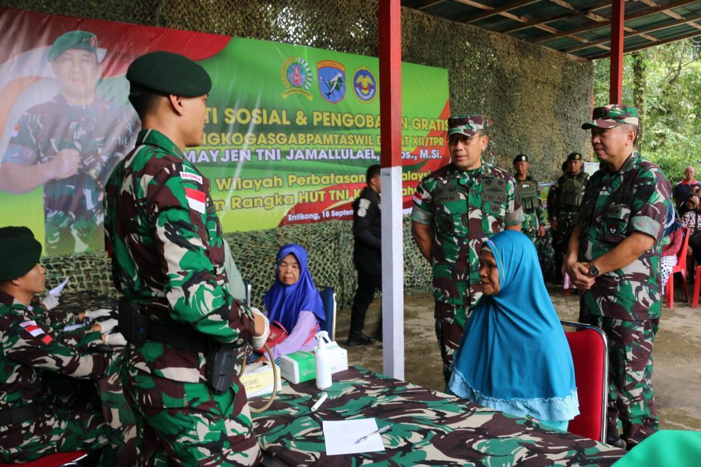 Kunjungan dilanjutkan dengan kegiatan Bantuan Sosial (Bansos) dan Pelayanan Kesehatan Gratis bagi masyarakat sekitar Entikong. Program ini merupakan wujud nyata kepedulian TNI terhadap kesejahteraan warga di sekitar wilayah operasi.