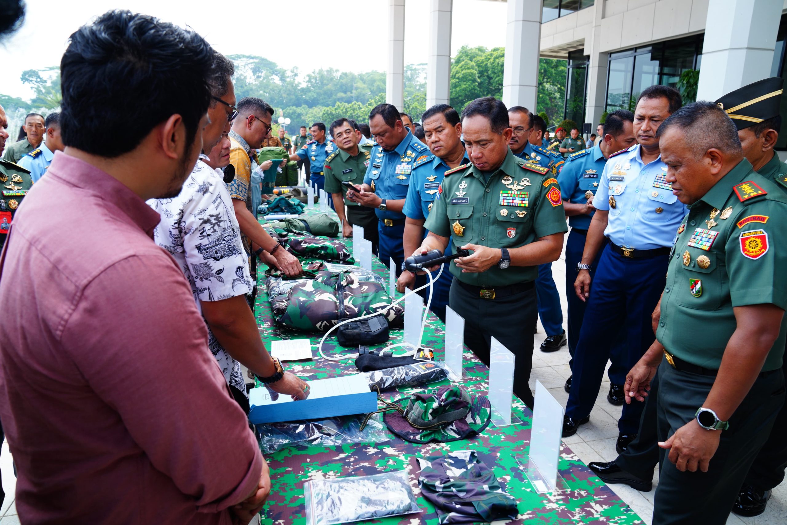 Panglima TNI memperhatikan dengan seksama presentasi dan demonstrasi berbagai perlengkapan operasional termasuk peralatan medis yang dirancang untuk penugasan Dalam Negeri. Beliau juga berkesampatan berdialog dengan para ahli dan personel terkait untuk memastikan tingkat kesiapan yang optimal.