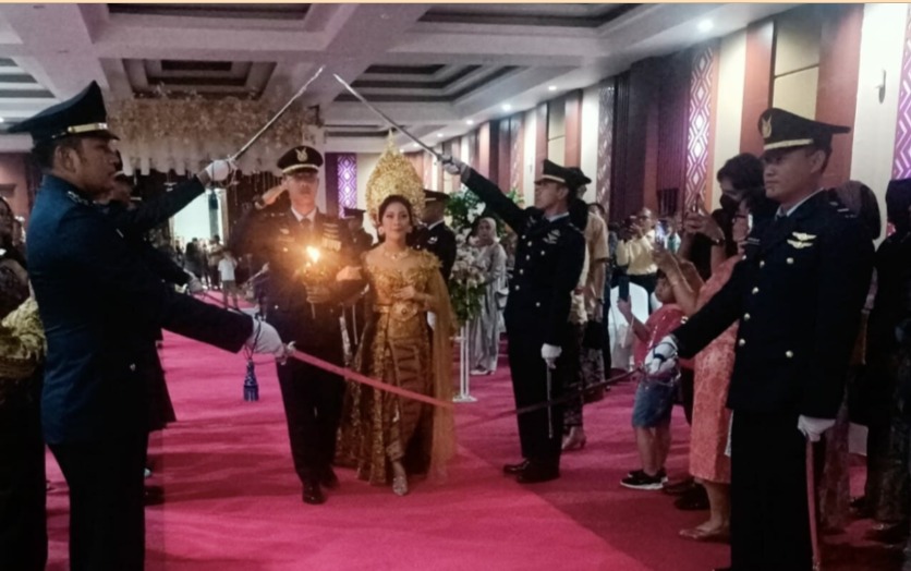 Sumber dan Foto: Dispenau. DelikAsia.com, (Lanud-ZAM),–Mewakili Komandan Pangkalan TNI Angkatan Udara (Danlanud ZAM) Kepala Dinas Operasi (Kadisops) Letkol Lek Riki Husman, S.Si.T, M. han bacakan wejangan Danlanud ZAM pada upacara tradisi pernikahan militer, Sabtu(28/1/2023)