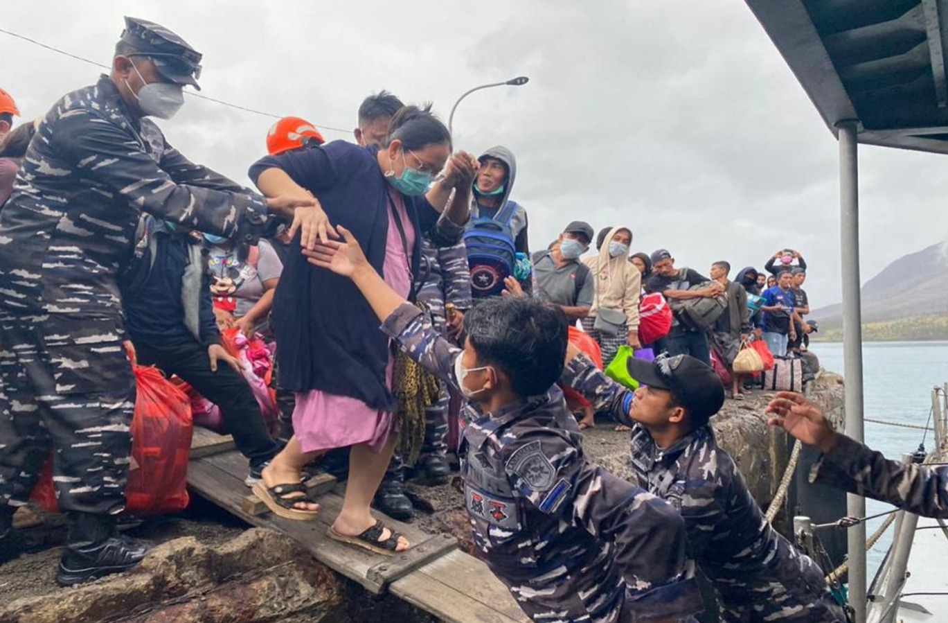 Turut hadir dalam evakuasi para warga Tagulandang yaitu Asrena Danlantamal VIII Kolonel Laut (T) Soemartono, S.T., dan Asintel Danlantamal VIII Kolonel Laut (KH) Ir. Florendo V. Jacobus, M.Si.