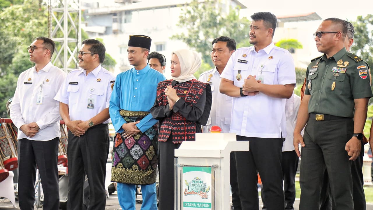 Delik Asia, (Medan) | Kasdam I/Bukit Barisan Brigjen TNI Arif Hartoto menghadiri pembukaan Pekan Inovasi dan Investasi Sumatera Utara (PIISU) 2025 di Lapangan Istana Maimun, Medan, Rabu (20/8/2025).