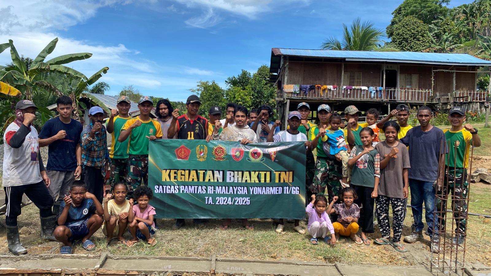 DelikAsia.com, (Nunukan) | Dalam rangka mempererat sinergi antara TNI dan masyarakat, Satgas Pamtas Yonarmed 11 Kostrad Pos Bukit Keramat bersama warga Desa Sungai Limau, Kecamatan Sebatik Tengah, Kabupaten Nunukan, melaksanakan kegiatan karya bakti pengecoran pondasi untuk pendirian gereja di desa tersebut.
