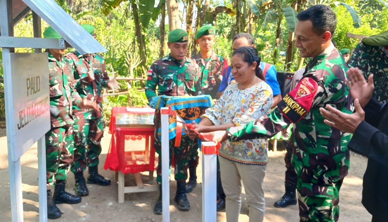 DelikAsia.com, (Jakarta) | Satgas Pamtas RI-RDTL Sektor Timur Yonif 742/SWY, yang dipimpin Mayor Inf Trijuang Danarjati, S.A.P,. (Dansatgas) meresmikan bangunan TK Paud Jelita Ceria yang direhab oleh personel Pos Delomil Kipam II, sekaligus penyerahan meja dan kursi serta perlengkapan sekolah lainnya yang dilaksanakan pada Sabtu (24/02/2024).