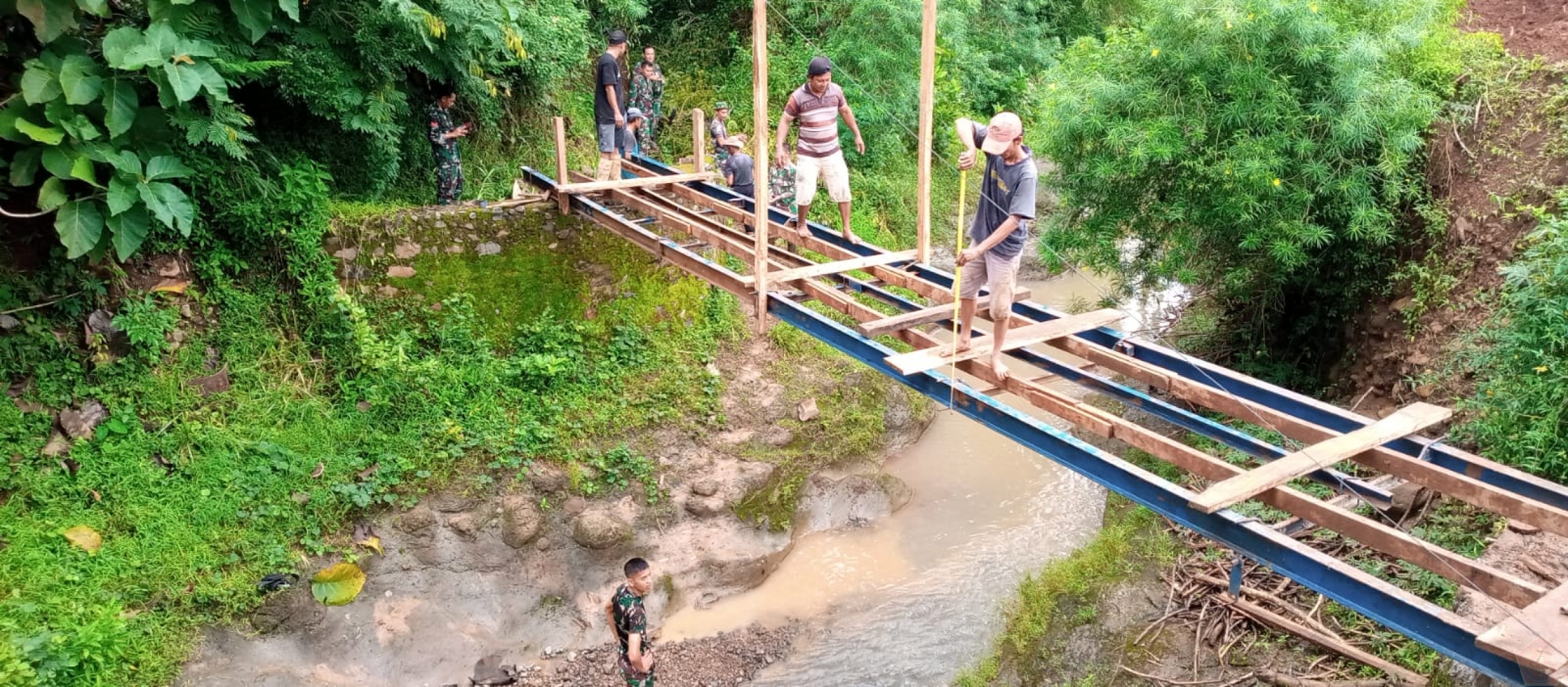 Pada kesempatan yang sama Peltu Syaiful juga mengatakan inisiatif Sunaryo ini kami apresiasi dengan luar biasa karena dalam kondisi saat ini masih ada Tokoh Masyarakat memikirkan pembangunan jembatan dengan metode swadaya.