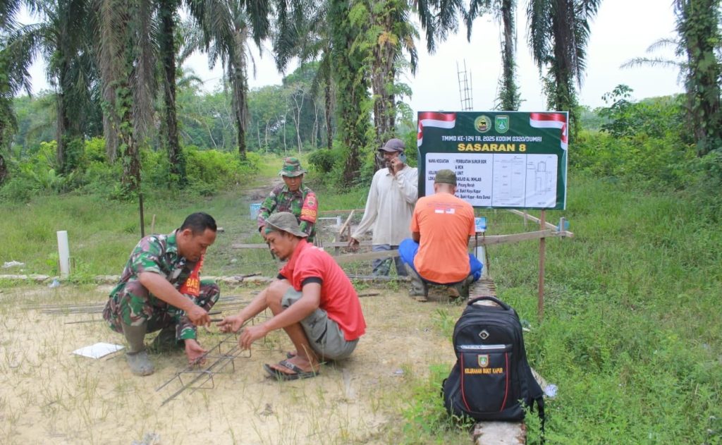 DelikAsia, (Dumai) | Semangat gotong royong kembali menyala di Jalan Pinang Merah, Kelurahan Bukit Kayu Kapur, Kecamatan Bukit Kapur, Kota Dumai. Pada Kamis (15/5/2025), warga setempat bersama personel TNI Manunggal Membangun Desa (TMMD) bahu membahu membangun fasilitas sanitasi berupa sumur bor dan MCK (Mandi, Cuci, Kakus).