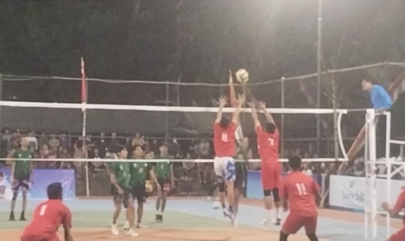 Spike keras mewarnai pertandingan dengan blocking rapat pemain, menjadikan permainan semakin seru dan menegangkan.