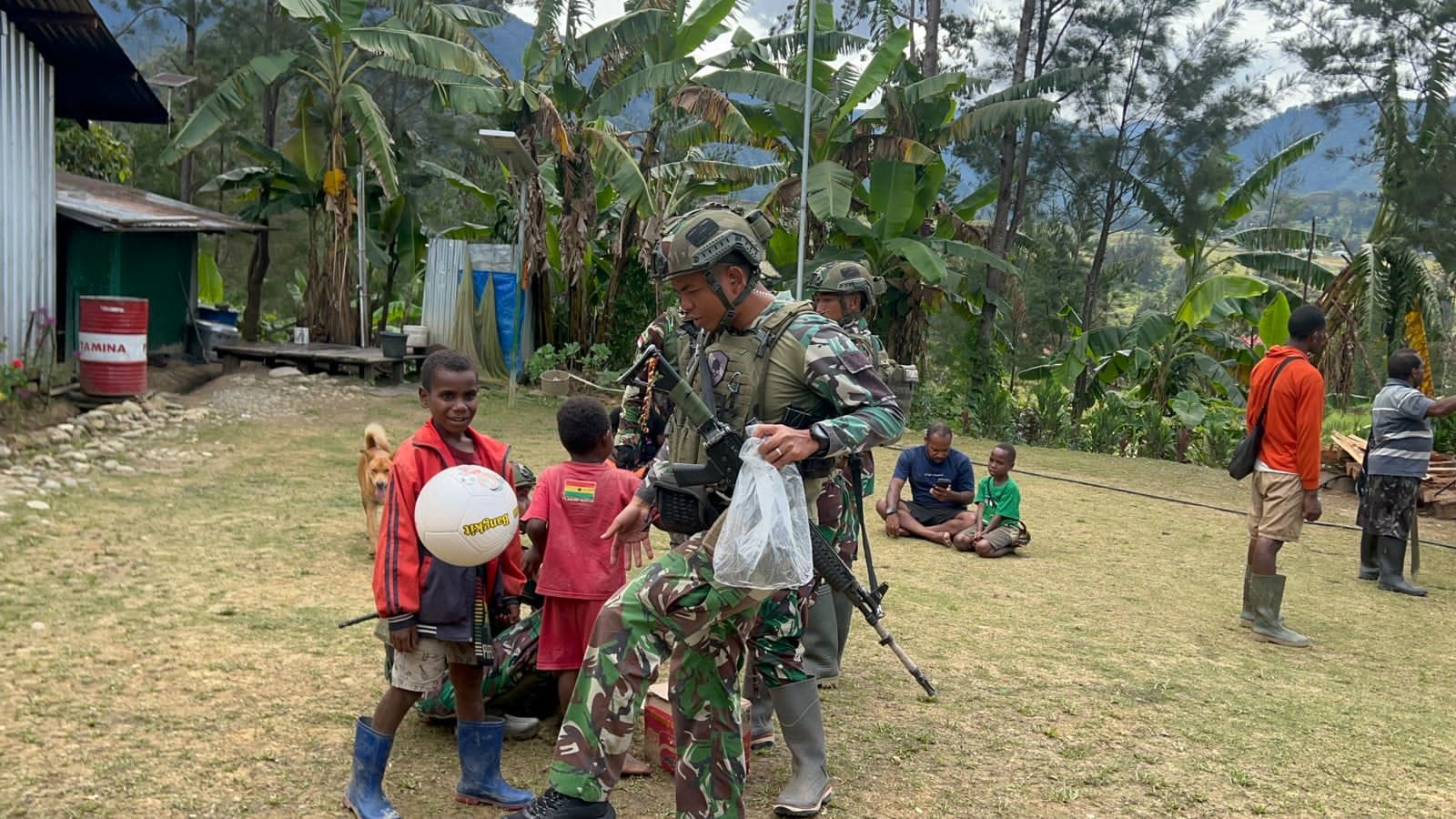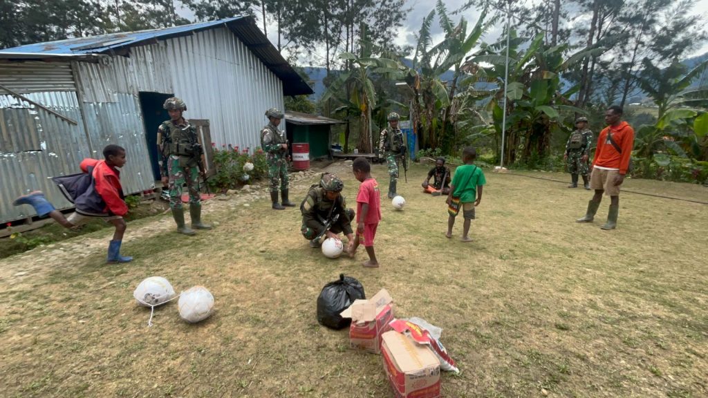 DelikAsia.com, (Puncak, Papua Tengah) | Dalam rangka meningkatkan kebahagiaan dan memupuk semangat generasi muda Papua, Satgas Yonif 323/Buaya Putih melaksanakan kegiatan teritorial dengan memberikan bantuan bola kaki kepada anak-anak dan pemuda di Kampung Kago, Distrik Ilaga, Kabupaten Puncak, Papua Tengah, pada Rabu (20/11/2024).
