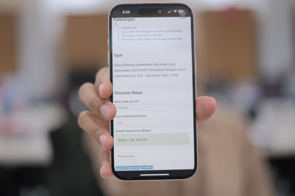 Aplikasi ini juga dilengkapi fitur verifikasi data bidang tanah, yang menurut Rifano meningkatkan rasa aman dalam bertransaksi. “Sekarang kalau mau transaksi tanah, kita bisa pastikan keaslian data. Jadi lebih tenang,” ucapnya.