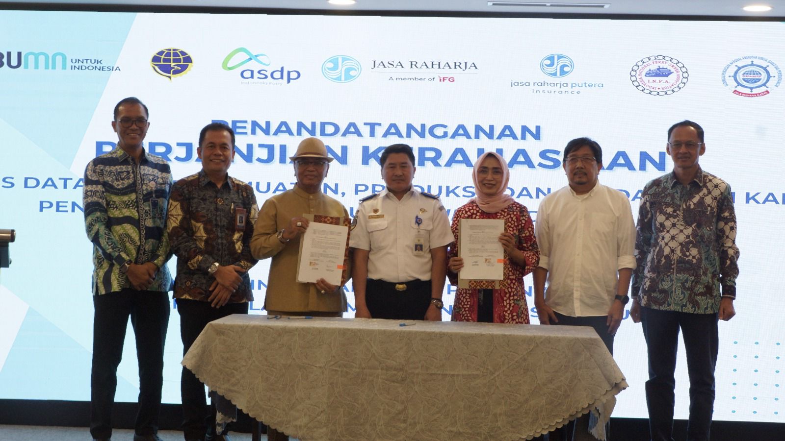 Perjanjian kerahasiaan ini ditandatangani oleh para pihak operator kapal yang terlibat, serta disaksikan secara langsung oleh berbagai pihak berkepentingan seperti jajaran TSDP Kemenhub RI, Pusdatin Kemenhub RI, Jasa Raharja, Jasa Raharja Putra, BPTD, Gapasdap, dan INFA.