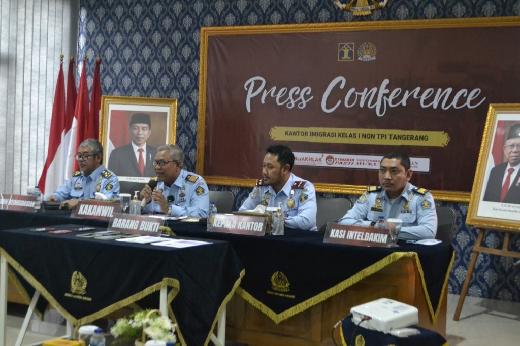Terkait hal tersebut, Kepala Kantor Wilayah Tejo Harwanto bersama Kepala Divisi Keimigrasian Ujo Sujoto dan Kepala Kantor Imigrasi Tangerang Rakha Sukma Purnama melakukan Press Conference, Senin (20/02/2023).