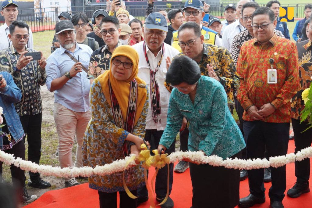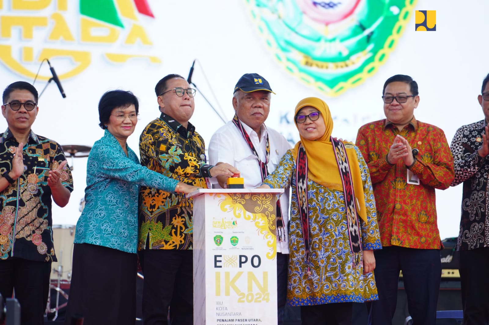 DelikAsia.com, (Penajam Paser Utara) | Menteri Pekerjaan Umum dan Perumahan Rakyat (PUPR) sekaligus Plt. Kepala Otorita Ibu Kota Nusantara (OIKN) Basuki Hadimuljono bersama Ibu Kartika Basuki Hadimuljono dan Bupati PPU Makmur Marbun secara resmi membuka Expo Ibu Kota Nusantara (IKN) 2024 di Kompleks Stadion Panglima Sentik, Kabupaten Penajam Paser Utara, Kalimantan Timur, Kamis (15/8/2024). Kegiatan ini memadukan pameran multi-produk usaha mikro kecil menengah (UMKM), pameran potensi investasi, forum pengembangan daerah, workshop serta panggung hiburan.