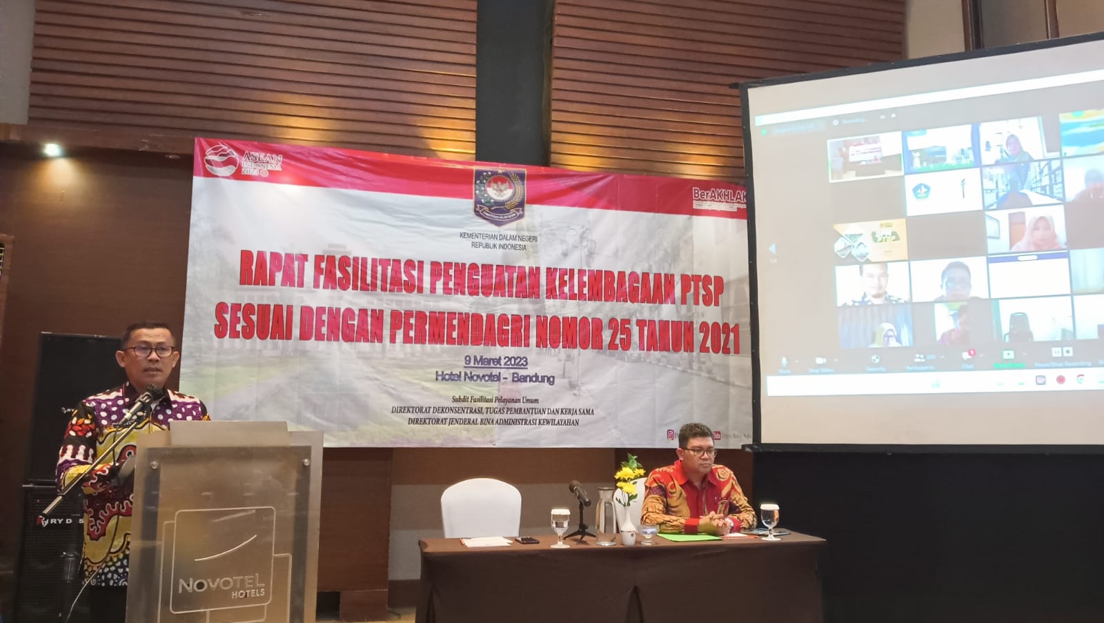 Bandung, (DelikAsia.com) | Direktorat Jenderal (Ditjen) Bina Administrasi Kewilayahan (Adwil) Kementerian Dalam Negeri (Kemendagri) mendukung terciptanya Dinas Penanaman Modal dan Pelayanan Terpadu Satu Pintu (DPMPTSP) yang dinamis, agile, dan profesional. Dukungan tersebut disampaikan Sekretaris Ditjen Bina Adwil Indra Gunawan saat membuka Rapat Fasilitasi Penguatan Kelembagaan PTSP sesuai dengan Permendagri Nomor 25 Tahun 2021 di Hotel Novotel, Bandung, Kamis (9/3/2023).