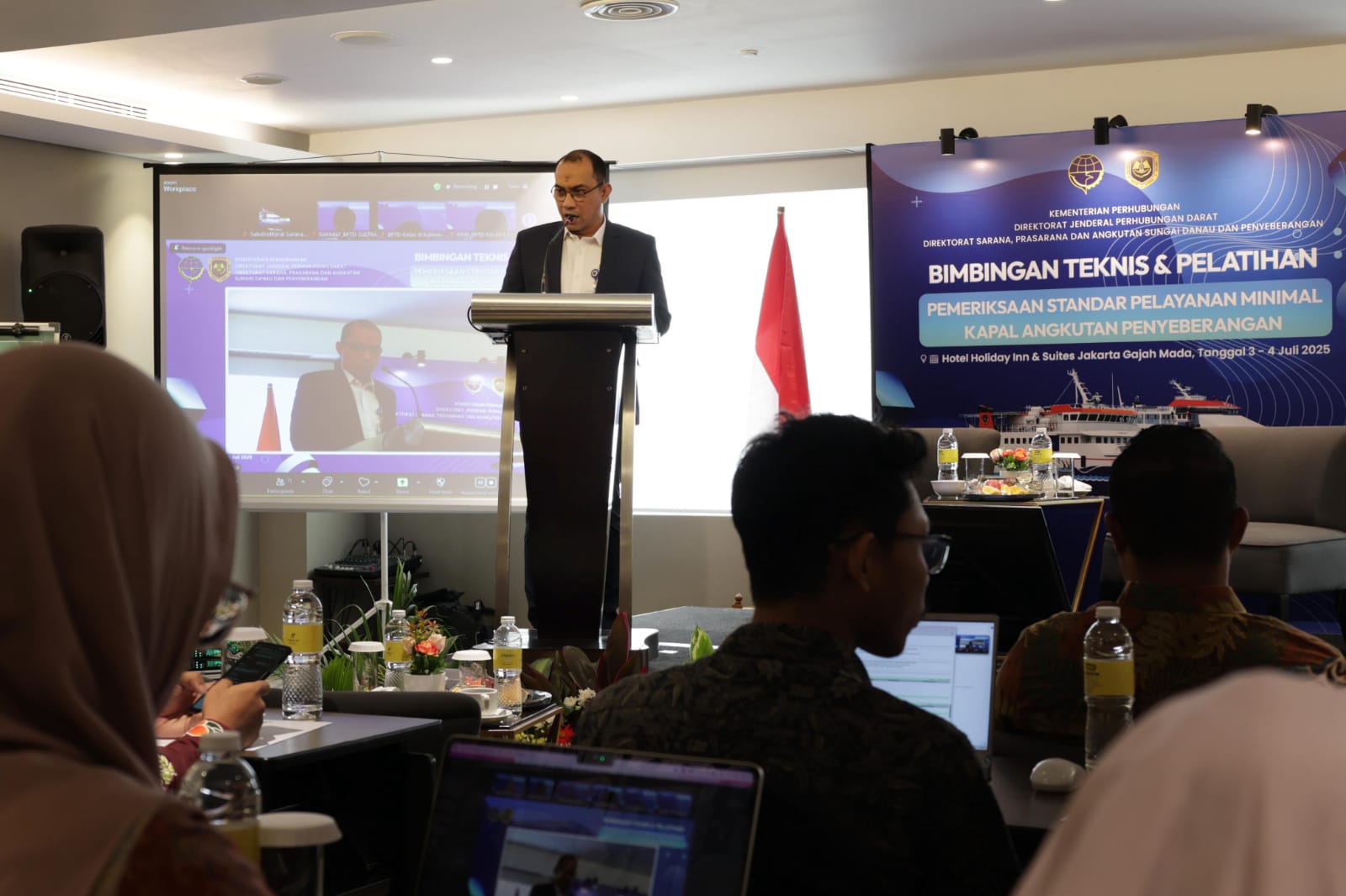 Delik Asia, (Jakarta) | Direktorat Jenderal Perhubungan Darat Kementerian Perhubungan melalui Direktorat Sarana Prasarana dan Angkutan Sungai Danau dan Penyeberangan terus berupaya meningkatkan kualitas dan kompetensi sumber daya manusia (SDM) di bidang pemeriksaan standar pelayanan minimal (SPM) kapal angkutan penyeberangan. Salah satunya dengan mengadakan Bimbingan Teknis dan Pelatihan terkait Pemeriksaan Standar Pelayanan Minimal Kapal Angkutan Penyeberangan yang diselenggarakan selama dua hari pada 3-4 Juli 2025 di Jakarta.