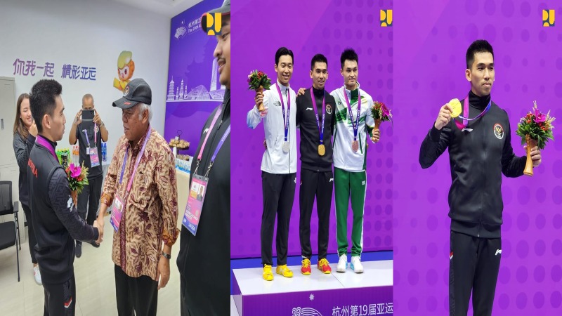 Jakarta, (DelikAsia.com) | Menteri Pekerjaan Umum dan Perumahan Rakyat (PUPR) Basuki Hadimuljono selaku Chef de Mission (CdM)/Ketua Kontingen Asian Games 2023 mengapresiasi perolehan medali emas ketiga di Asian Games 2023 Hangzhou, China yang disumbangkan Harris Horatius dari cabang olahraga Wushu.