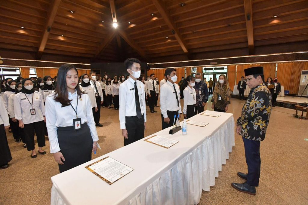 Pelaksanaan sumpah CPNS berlangsung di Balai Makarti Muktitama Kemendes PDTT, Jakarta.
