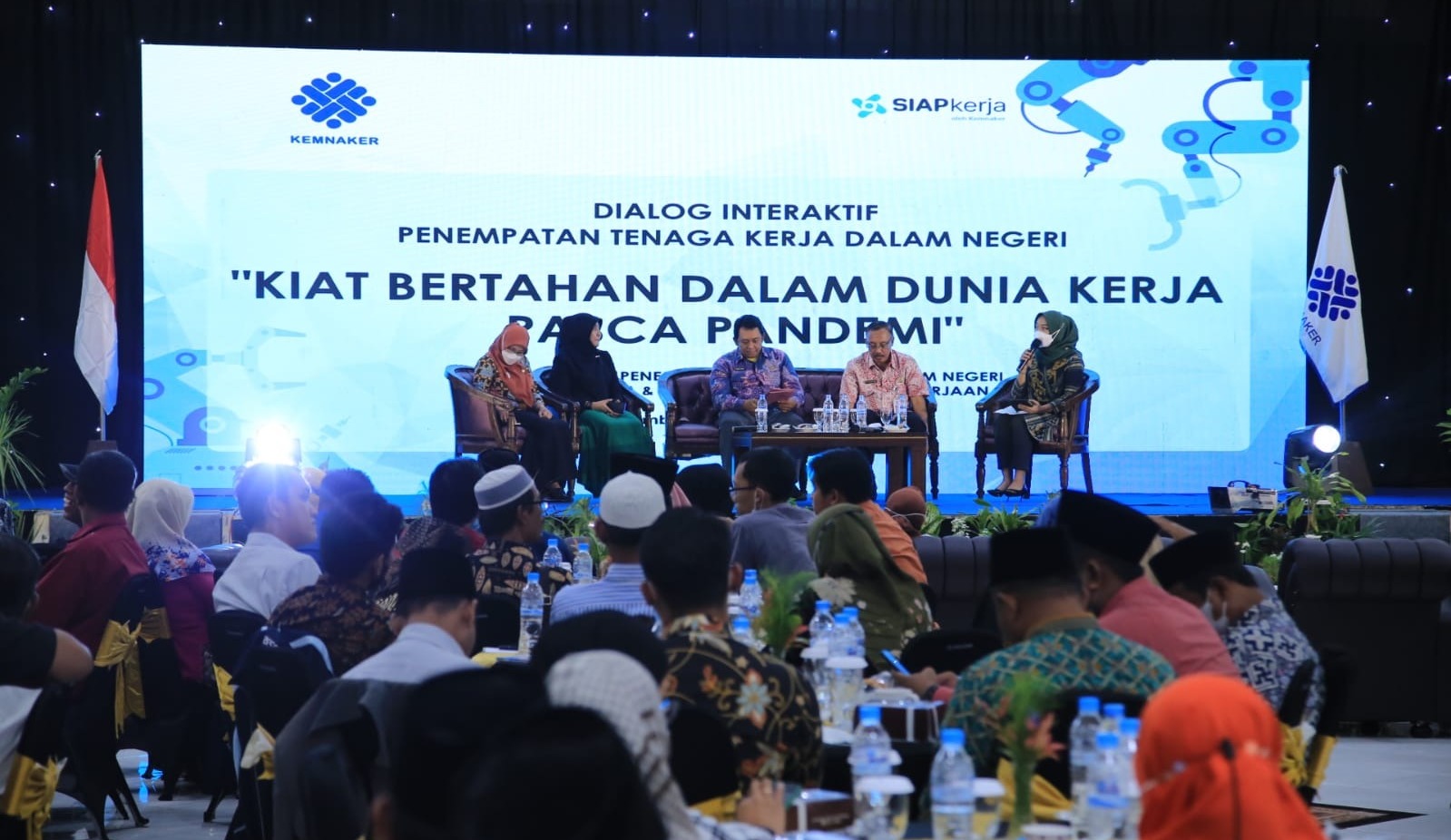 DelikAsia.com, (Jombang),–Pemerintah melalui Kementerian Ketenagakerjaan (Kemnaker) terus melakukan upaya menghadapi tantangan pembangunan ketenagakerjaan pasca pandemi COVID-19. Salah satunya melalui dialog interaktif yang mempertemukan 250 pencari kerja, wirausaha/pengusaha kecil dan menengah, pengusaha (industri) dan Pelayanan Terpadu Satu Pintu dan Tenaga Kerja Kabupaten Jombang, mewakili pemerintah