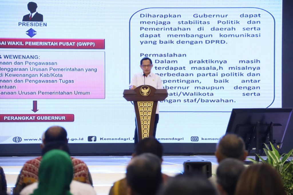 Mendagri menyebut, peran GWPP dalam praktiknya belum berjalan efektif. Padahal Undang-Undang (UU) telah memberikan berbagai kewenangan kepada gubernur untuk melakukan tugas-tugasnya sebagai wakil pemerintah pusat di daerah.