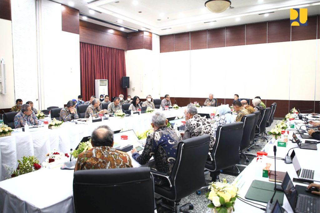Turut hadir mendampingi Menteri Basuki, Sekretaris Jenderal Kementerian PUPR Mohammad Zainal Fatah, Plt. Direktur Jenderal Sumber Daya Air Jarot Widyoko, Direktur Jenderal Cipta Karya Diana Kusumastuti, Direktur Jenderal Perumahan Iwan Suprijanto, Direktur Jenderal Pembiayaan Infrastruktur Herry Trisaputra Zuna, serta Kepala BPIW Rachman Arief Dienaputra.[Red/Birkom].