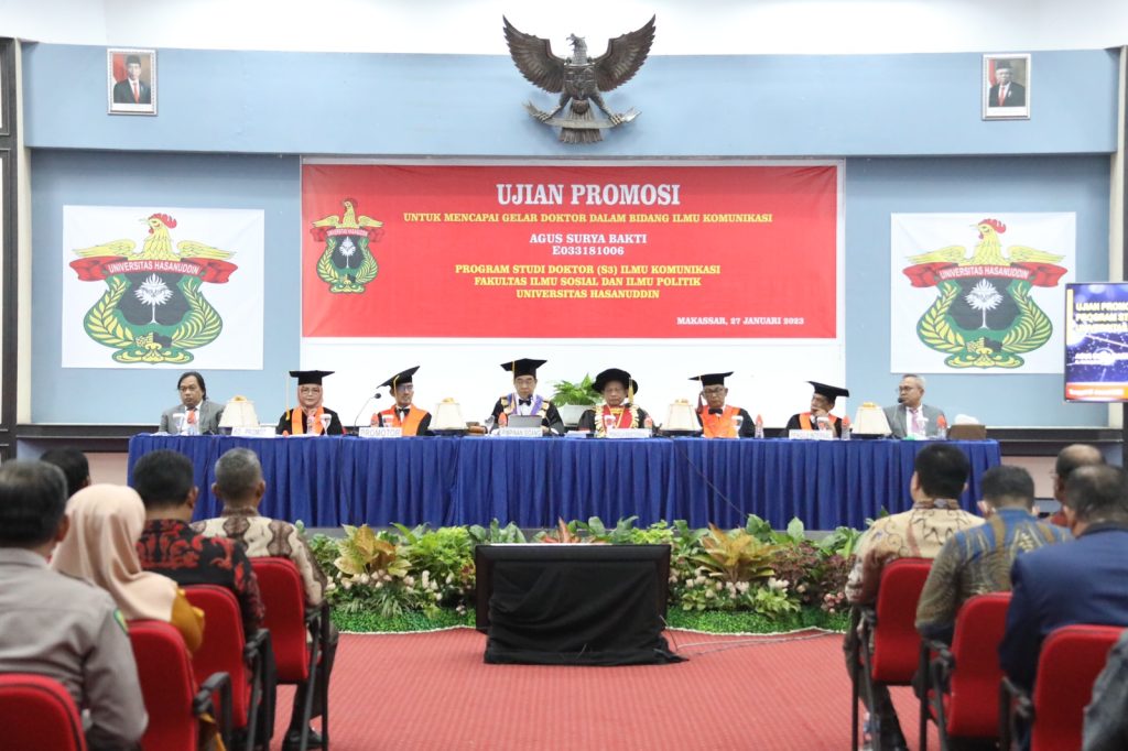 Ujian tersebut dibuka secara langsung oleh Rektor Unhas Jamaluddin Jompa, yang dalam kesempatan itu juga menjadi pimpinan sidang. Kemudian forum dilanjutkan dengan paparan disertasi oleh Agus selaku promovendus. Sidang kemudian dilanjutkan dengan tanya jawab antara dewan penguji termasuk tim promotor kepada promovendus.