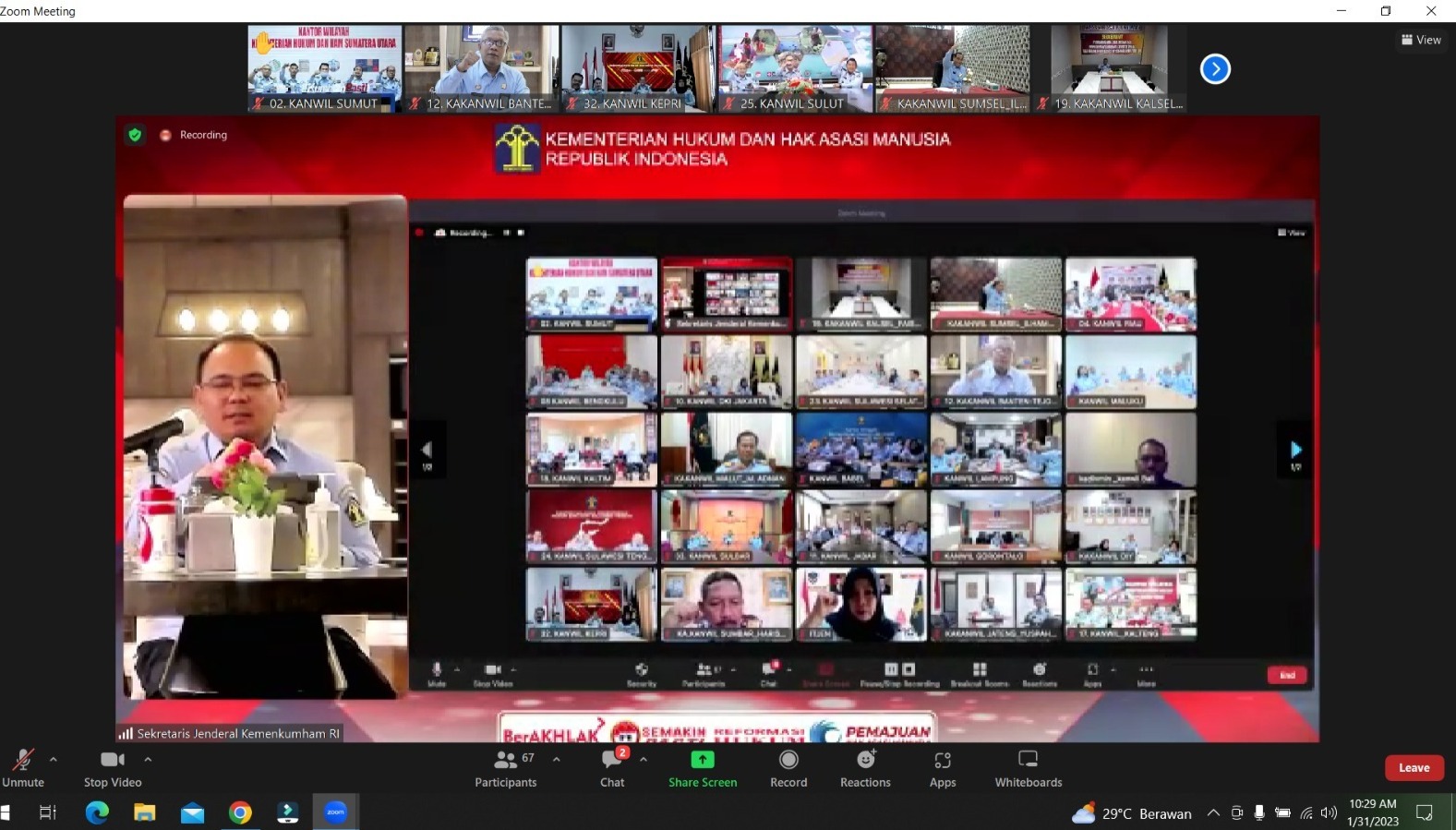 Foto: Kakanwil Tejo Harwanto saat ikuti Pengarahan dari Andap Budhi Revianto (Sekjen Kemenkumham RI) melalui Zoom Meeting.